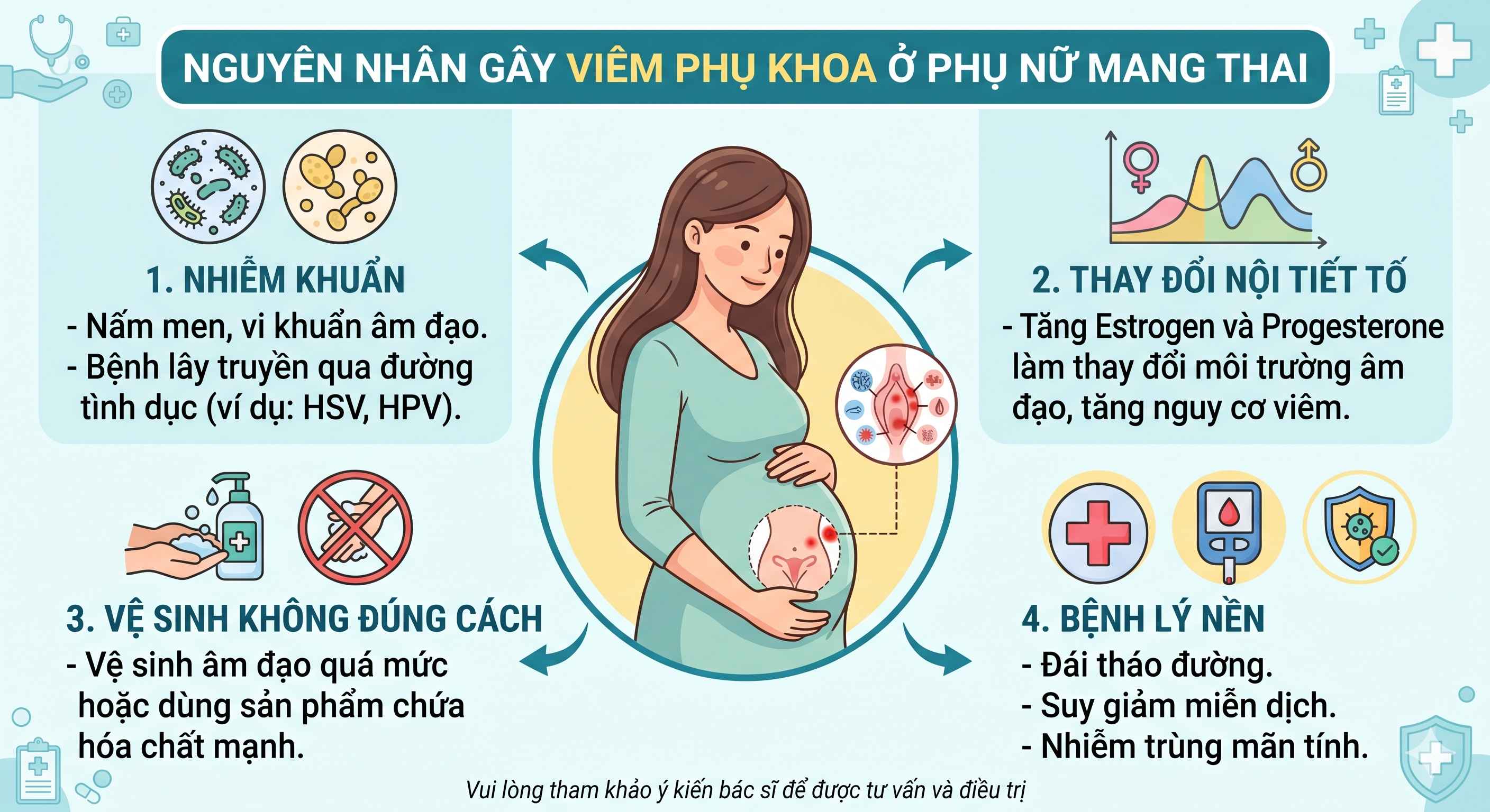 Nguyên nhân phổ biến gây viêm phụ khoa tái phát thường liên quan đến nhiễm trùng, rối loạn nội tiết và thói quen vệ sinh không đúng cách. Viêm phụ khoa tái phát có thể do vi khuẩn, nấm hoặc ký sinh trùng xâm nhập lại sau khi điều trị không triệt để, đặc biệt ở vùng kín ẩm ướt. Rối loạn nội tiết như suy giáp, mang thai hoặc mãn kinh làm thay đổi môi trường âm đạo, tạo điều kiện cho tái phát viêm âm đạo.
